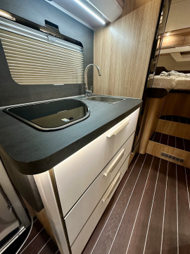 Med en fullt utrustad kök, bekväma sovplatser och praktiska förvaringslösningar är Knaus SkyWave 650 meg redo att göra ditt nästa äventyr minnesvärt och bekvämt. Och med Alde vattenburen centralvärme kan du vara säker på att du alltid kommer att ha en behaglig inomhustemperatur, oavsett vädret utanför.